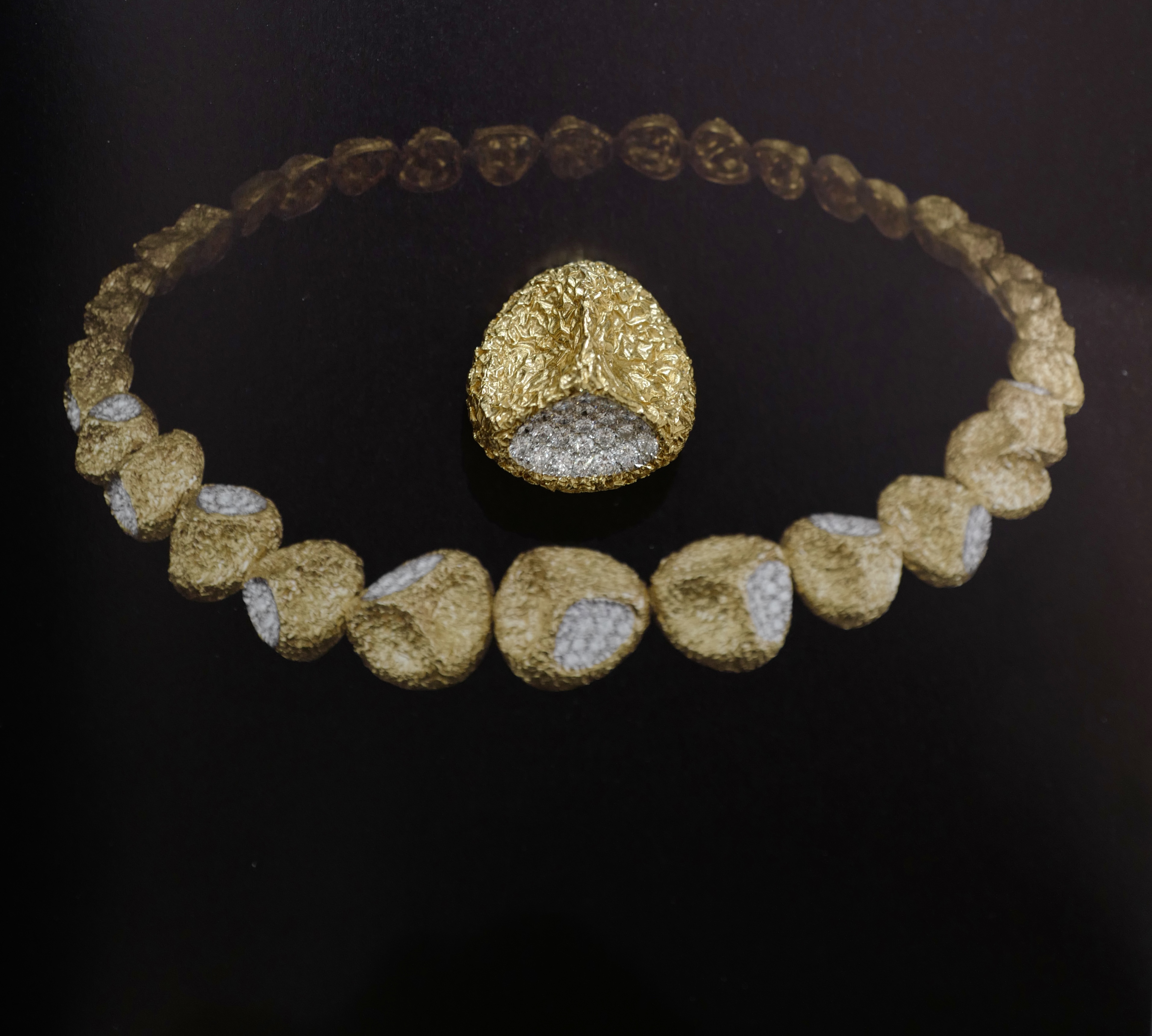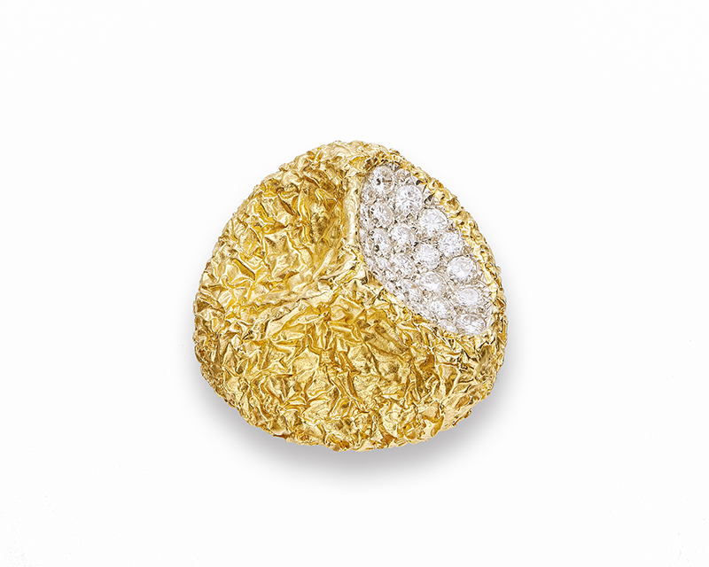Imbued with the 1960's taste for voluminous pieces, combining a three-dimensional approach with finely-wrought textures.