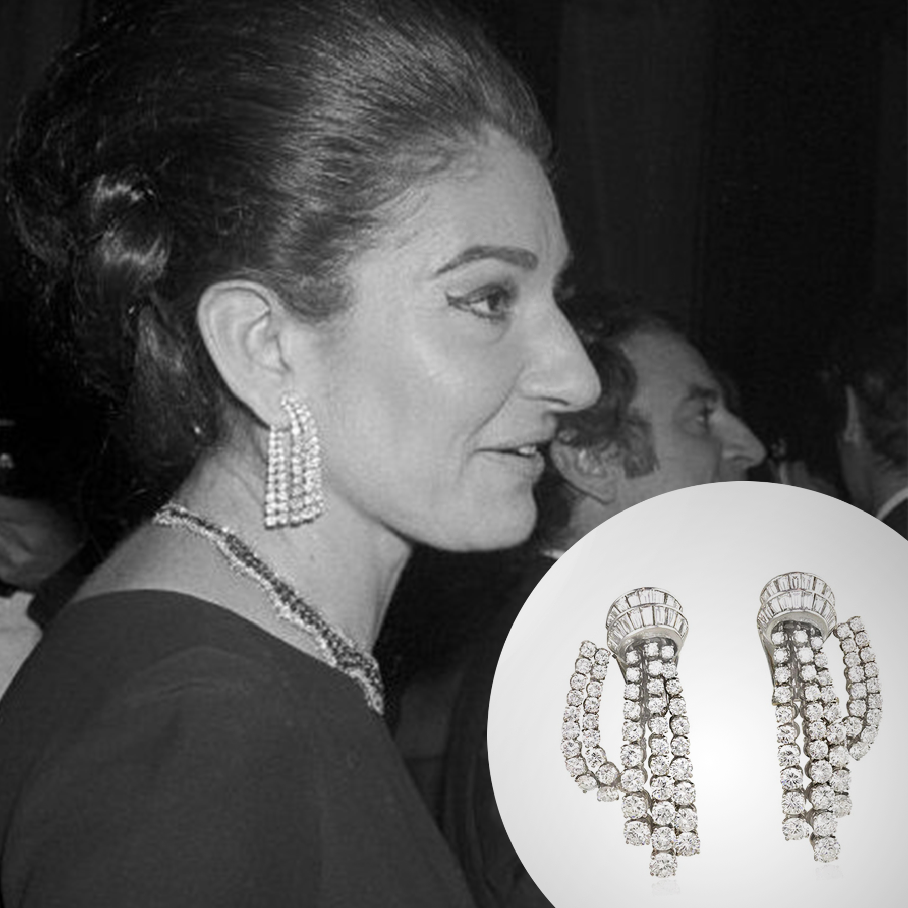 Maria Callas was the greatest soprano of the 20th century. She was the greatest diva of all time and the most significant figure in opera. Maria Callas wore her Cadcade diamond earrings in different time.