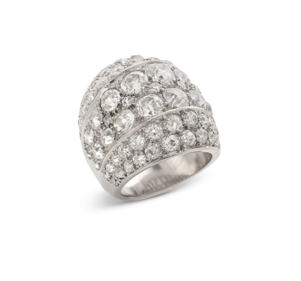 Old-cut diamonds with an approximate total weight of 7.70-9.50 carats.