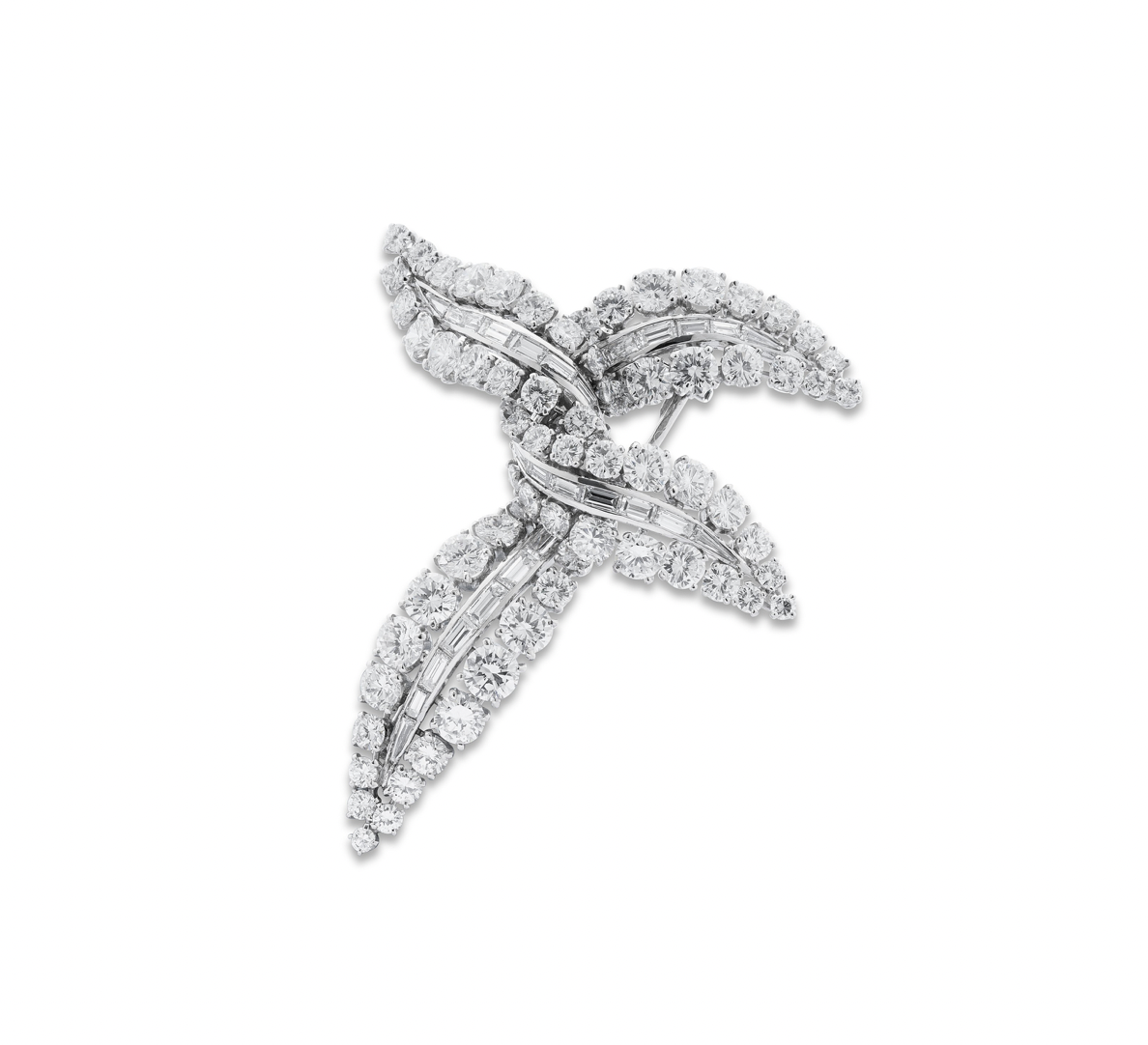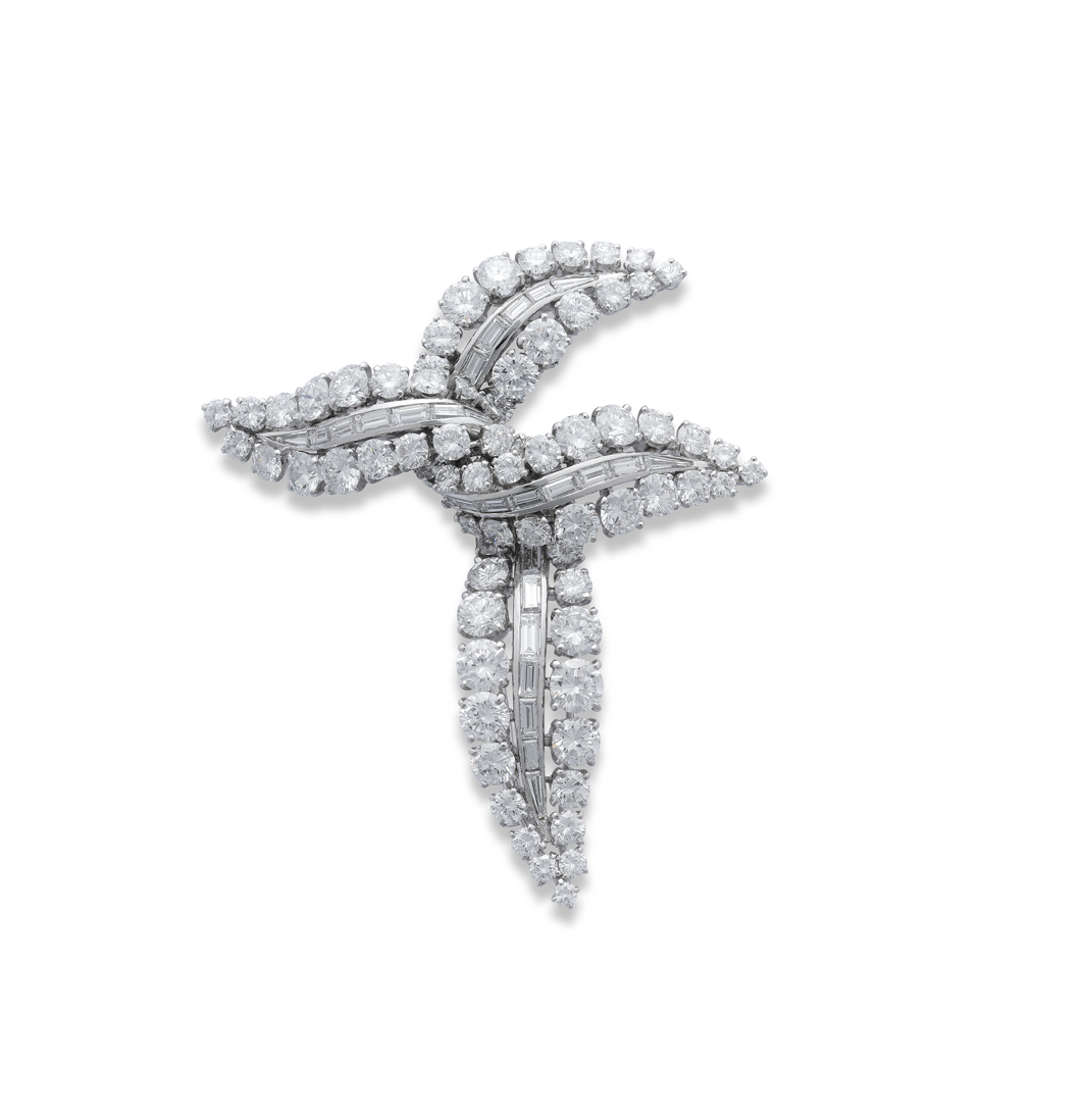 Circular and baguette-cut diamonds, platinum and white gold. Approximate diamond total weight of 11-13 carats.